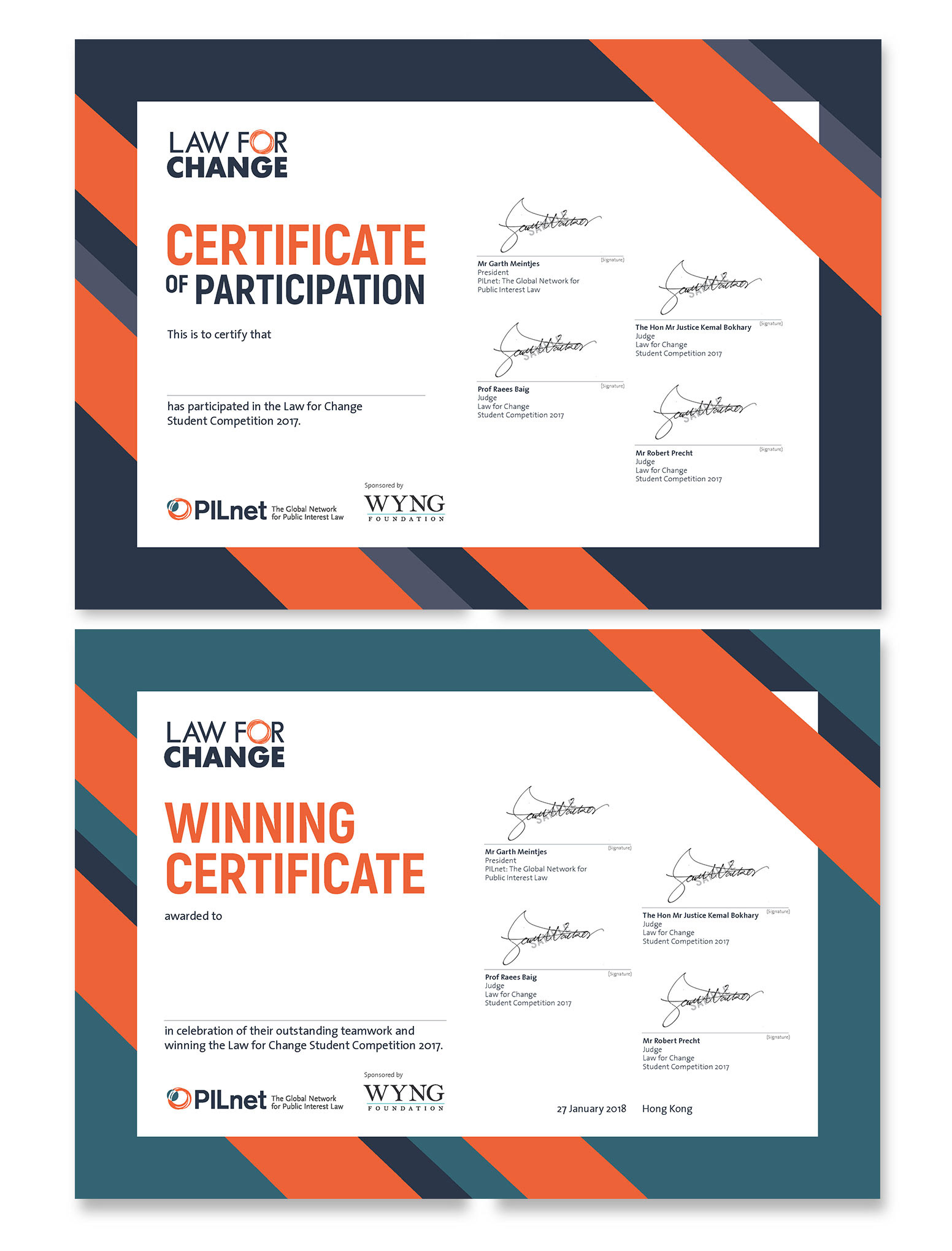 Competition award certificates